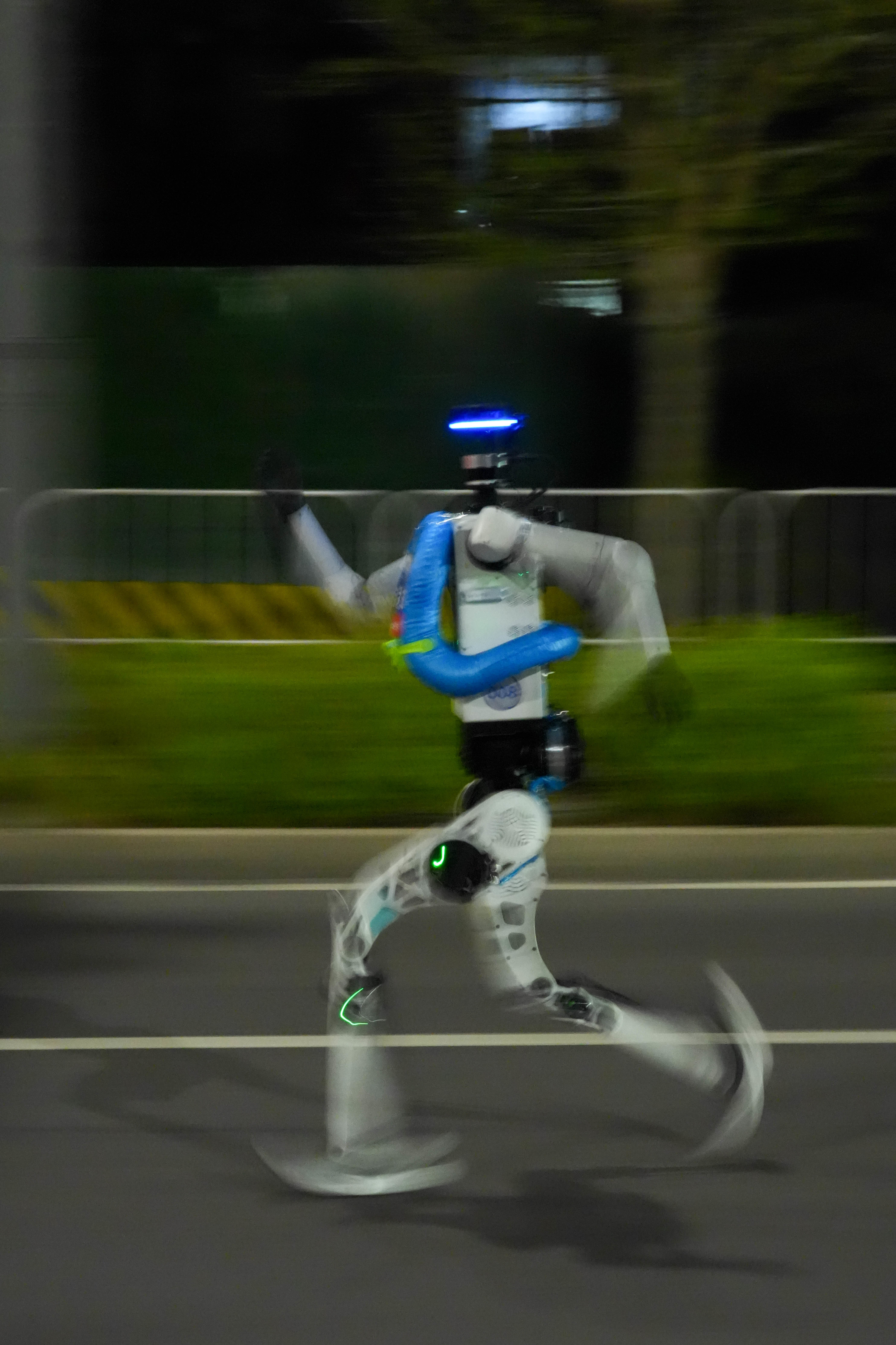4月11日,一台机器人在测试活动中奔跑。新华社记者 谢晗 摄